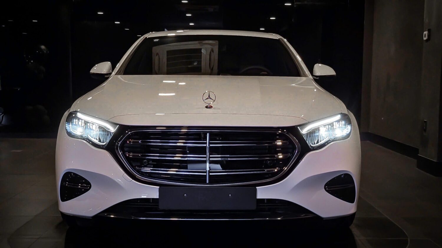 Nhìn từ trực diện, khách hàng sẽ dễ dàng nhận ra sự thay đổi trên E 200 Exclusive All New so với E 200 Exclusive 2024. Đó là E 200 Exclusive phiên bản mới được trang bị hệ thống đèn chiếu sáng Full LED với điểm nhấn là lưới tản nhiệt 3 nan ngang to bản bọc crom, khe hút gió được mạ Crom cỡ lớn làm tăng tính sang trọng. Logo thương hiệu gắn ngay trên nắp ca-pô.