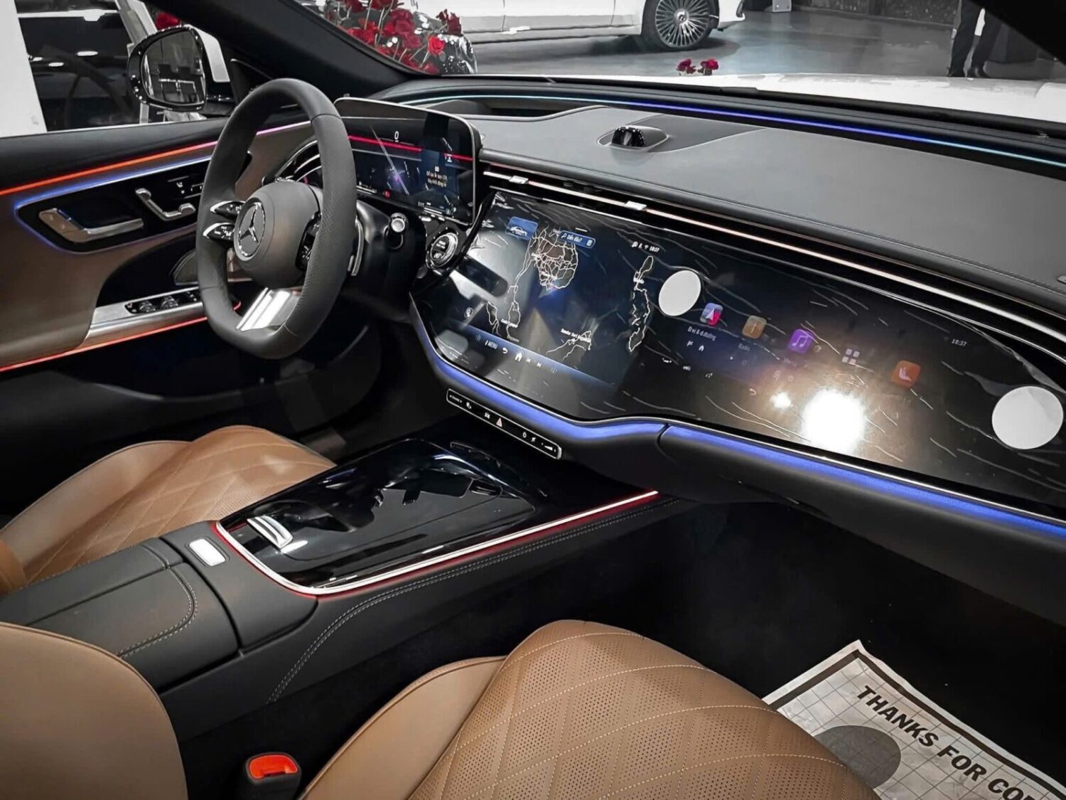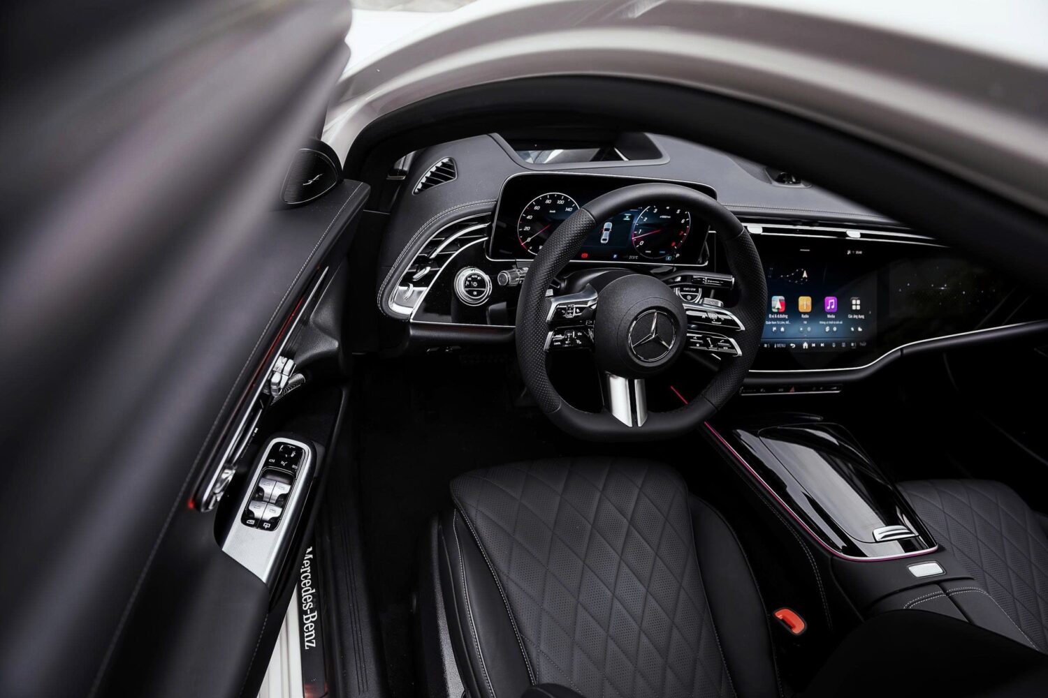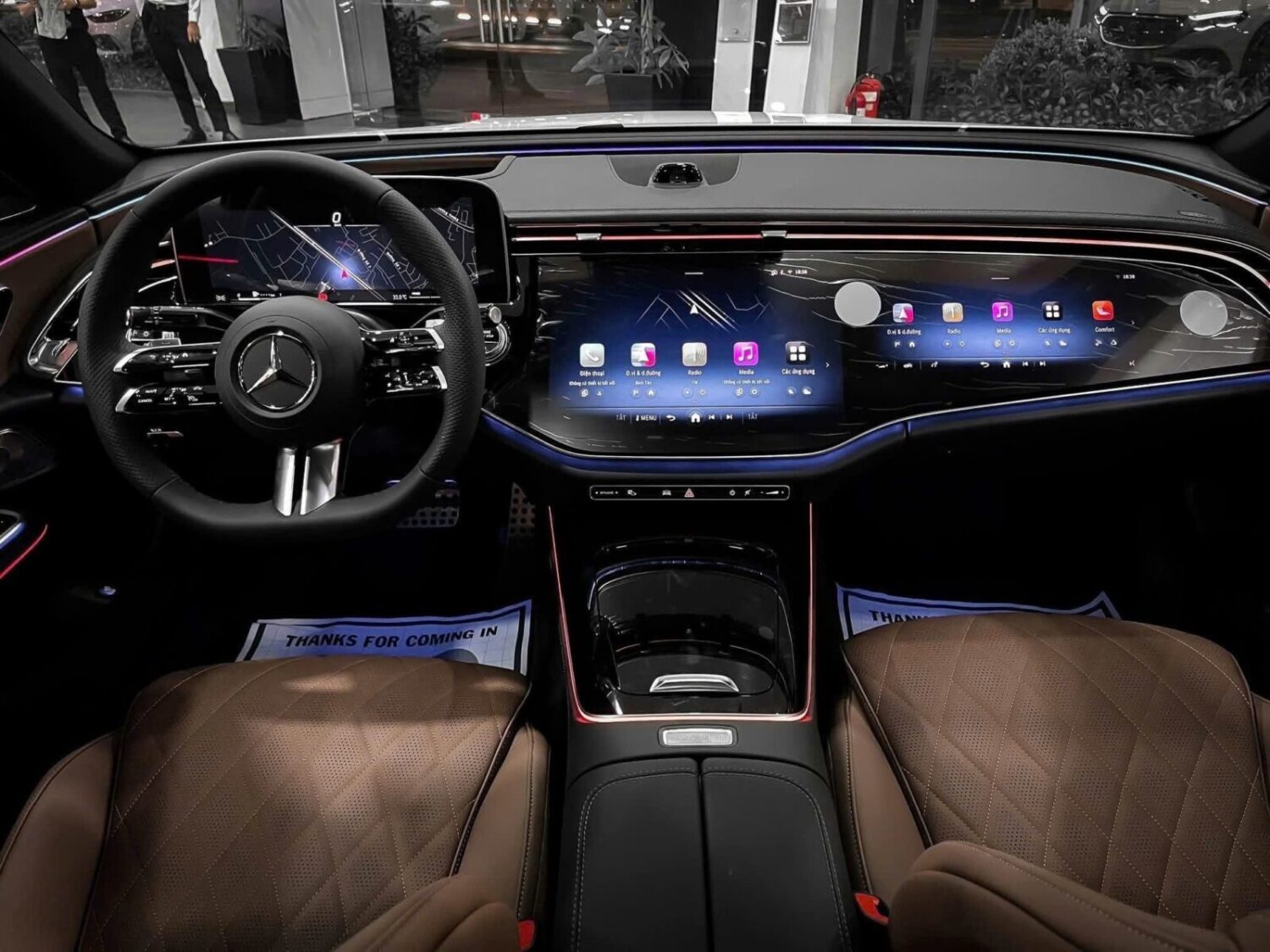 Điểm nhấn nổi bật nhất ở khoang lái là màn hình hyperscreen 12.3 inch liền mạch gồm bảng đồng hồ kỹ thuật số và màn hình giải trí trung tâm 14.4 inch. Đa số khách hàng đều thích phần ốp gỗ piano màu đen bóng trên bề mặt táp lô của E 300 AMG bởi nó toát lên vẻ thể thao.