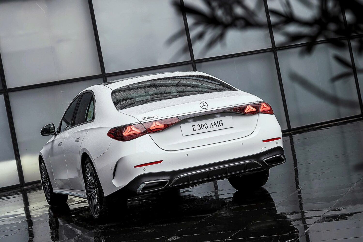 Nếu đã từng nhìn thấy hình ảnh của S-Class thế hệ mới nhất, bạn sẽ nhận ra sự tương đồng về về thiết kế với E 300 AMG 2025. Ấn tượng nhất là cụm đèn hậu LED xếp hình logo ngôi sao 3 cánh 3D thay thế cho kiểu dáng cánh chim cũ.